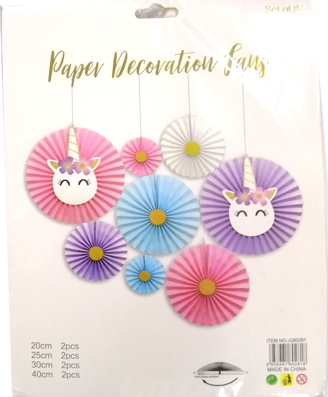 Create a whimsical party atmosphere with this paper decorative fans. Fan Paper Decorative Unicorn. Generally, purpose-made handheld fans are folding fans, which are shaped like a sector of a circle and made of a thin material (such as paper or feathers) mounted on slats which revolve around a pivot so that it can be closed when not in use. This is one of the ideas for the party decoration that's attracts all the visitors and catch everyone attention. Paper Fans Party Decoration Paper Decoration best for Birthday, Wedding, Graduation etc..