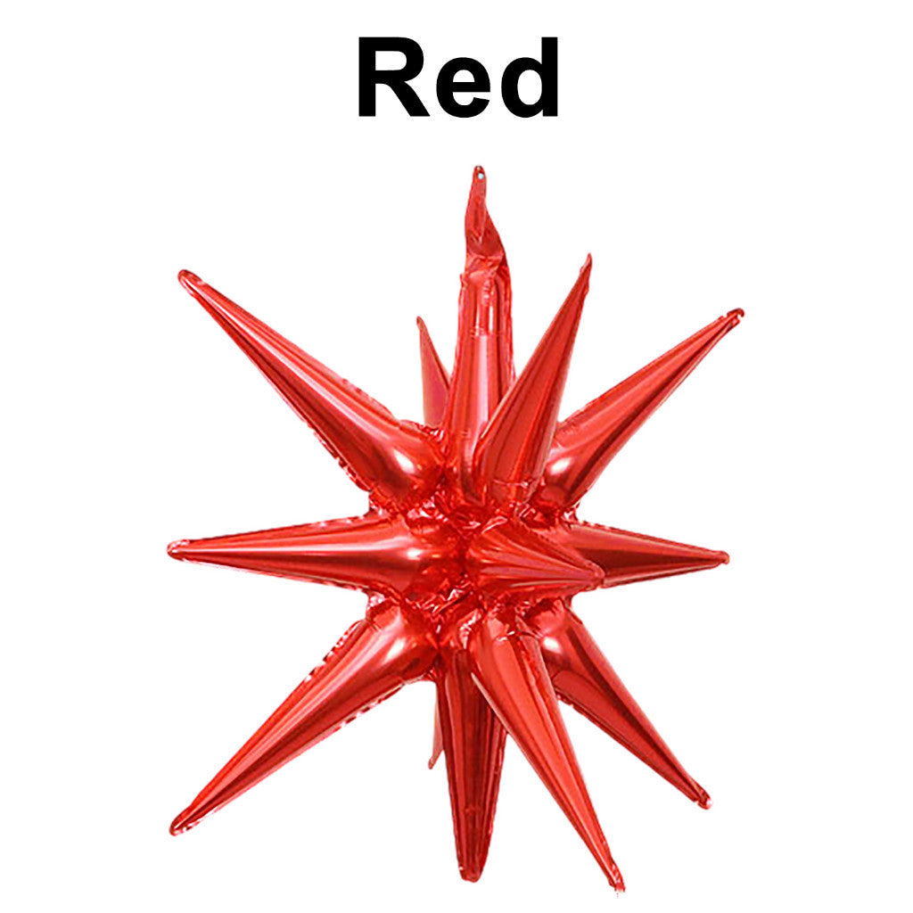 The Large Starburst Foil Balloon (sometimes called a starburst or exploding star balloon) is a stunning 3D decoration featuring metallic foil points radiating from the center in a classic star-shaped burst design. These jumbo balloons—commonly offered in sizes ranging from around 27" to 40"—are air-filled only and do not float with helium. They come in a rainbow of colors like metallic gold, silver, rose gold, blue, hot pink, black, and iridescent, and are typically assembled from 12 individual self-sealing cones with a handheld straw or pump. Perfect for bold visual impact at birthday parties, weddings, New Year’s, or any festive space—ideal for ceiling hanging, photo backdrops, or embellishing balloon arches and columns.