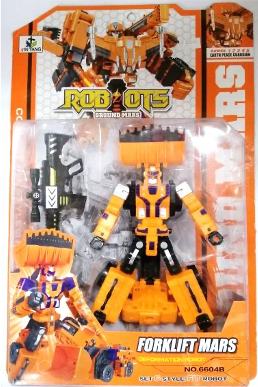 Robot Forklift Mars a hero combination robot and vehicles interaction cool deformation with light, bump & go and music features. It's a mighty righteous hero! Robot toys for kids can encourage the development of problem solving skills, fine motor skills, communication skills, creativity and much more. Robot toys also act as a great tool for tempting your children away from screen time!